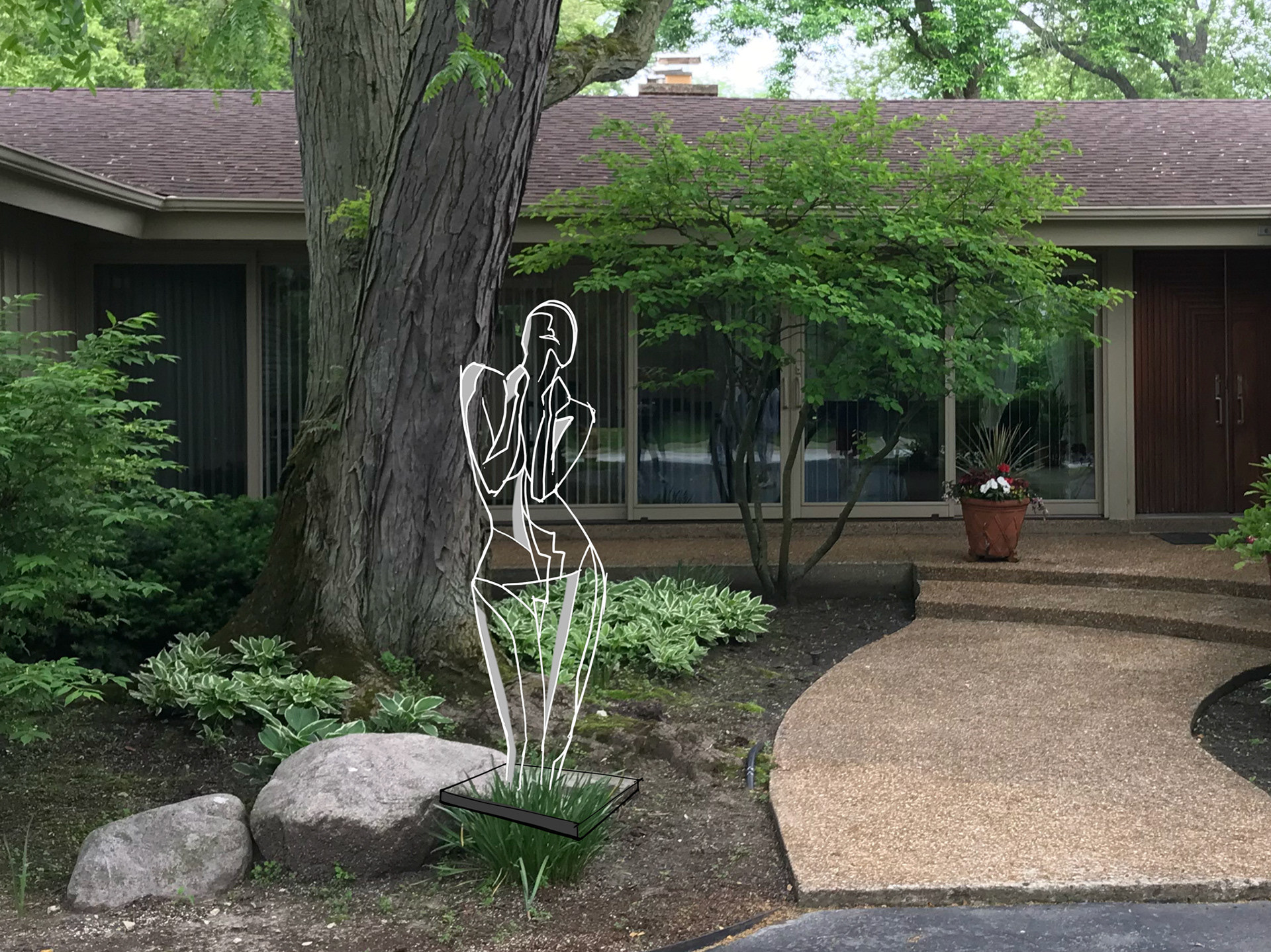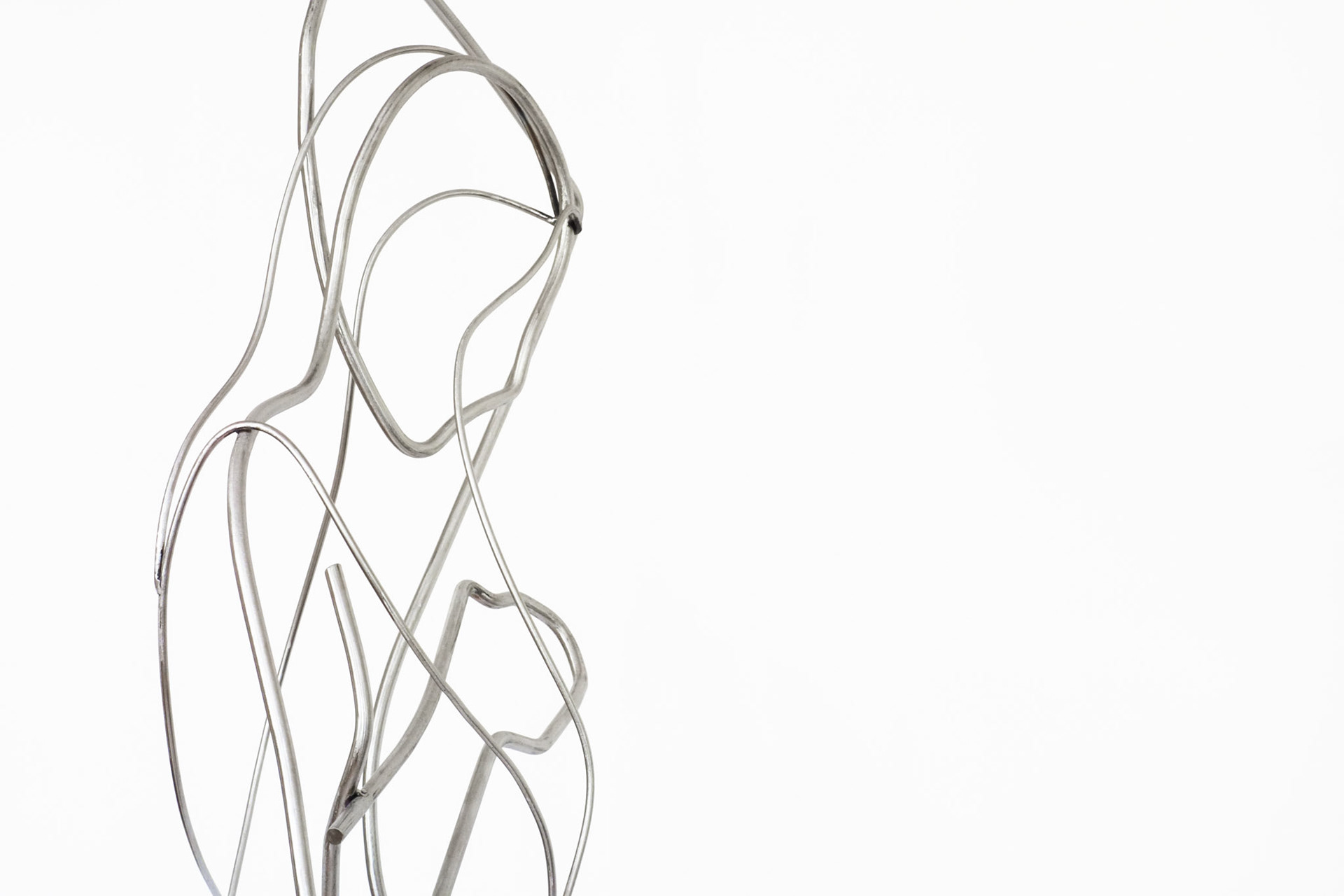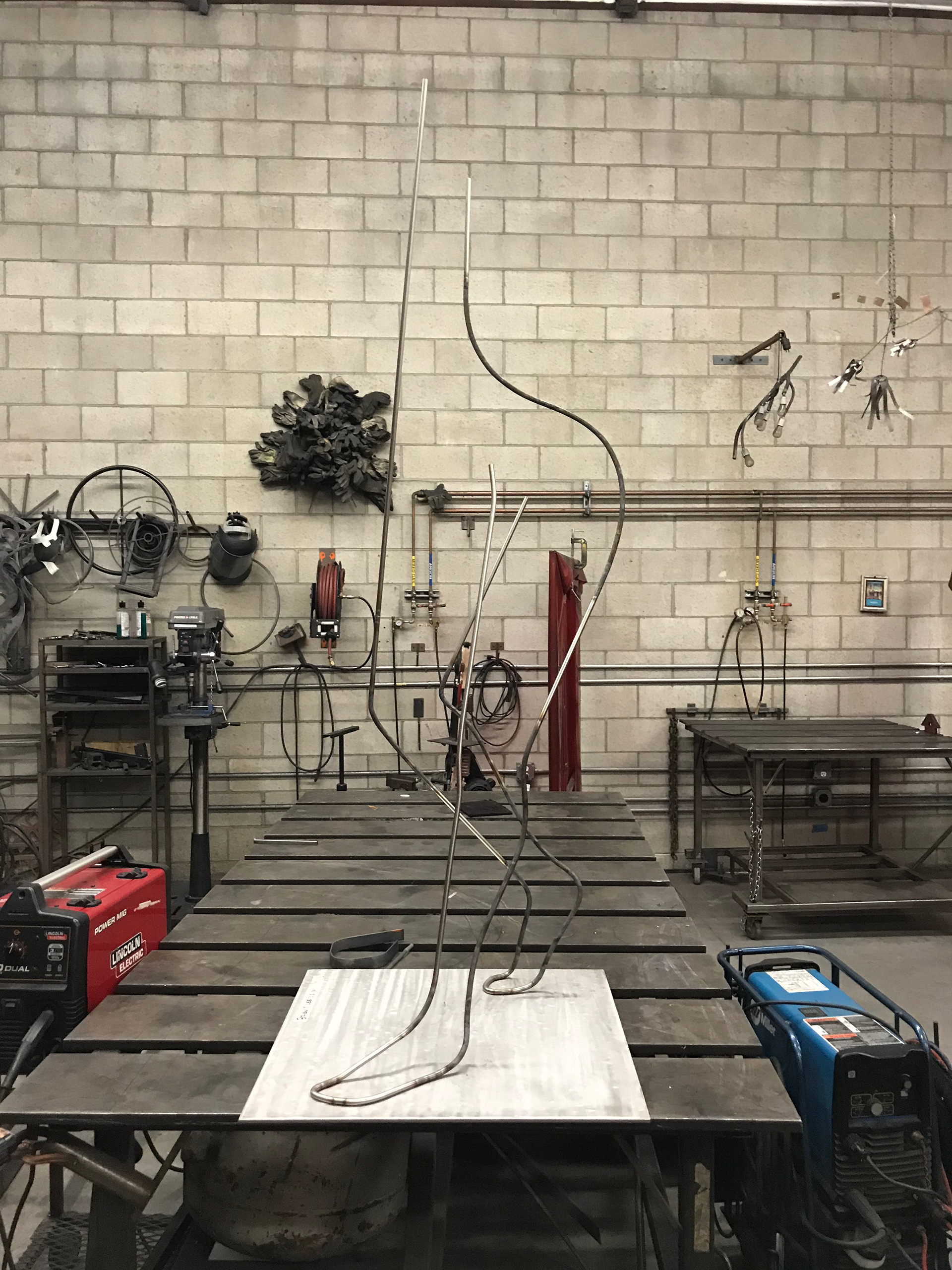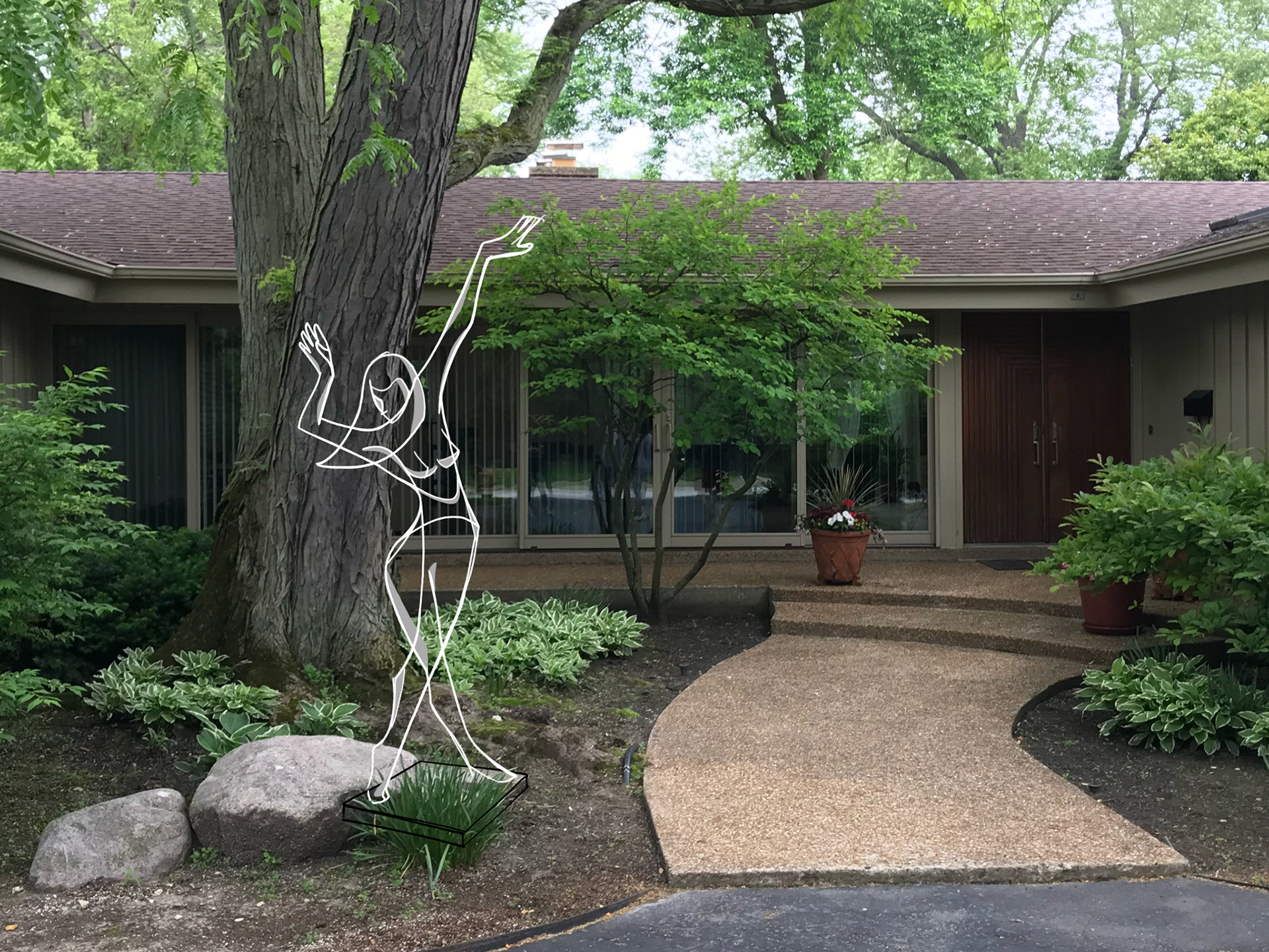 Exterior sculpture commission for a client in Highland Park, IL. TIG welded, torch-formed, brushed finish 304L stainless steel. A study in balance, rhythm, and line.