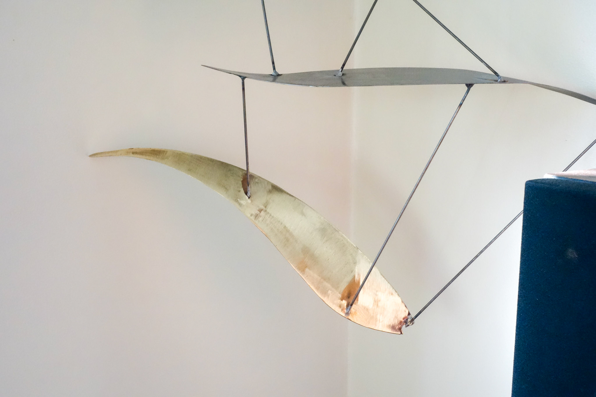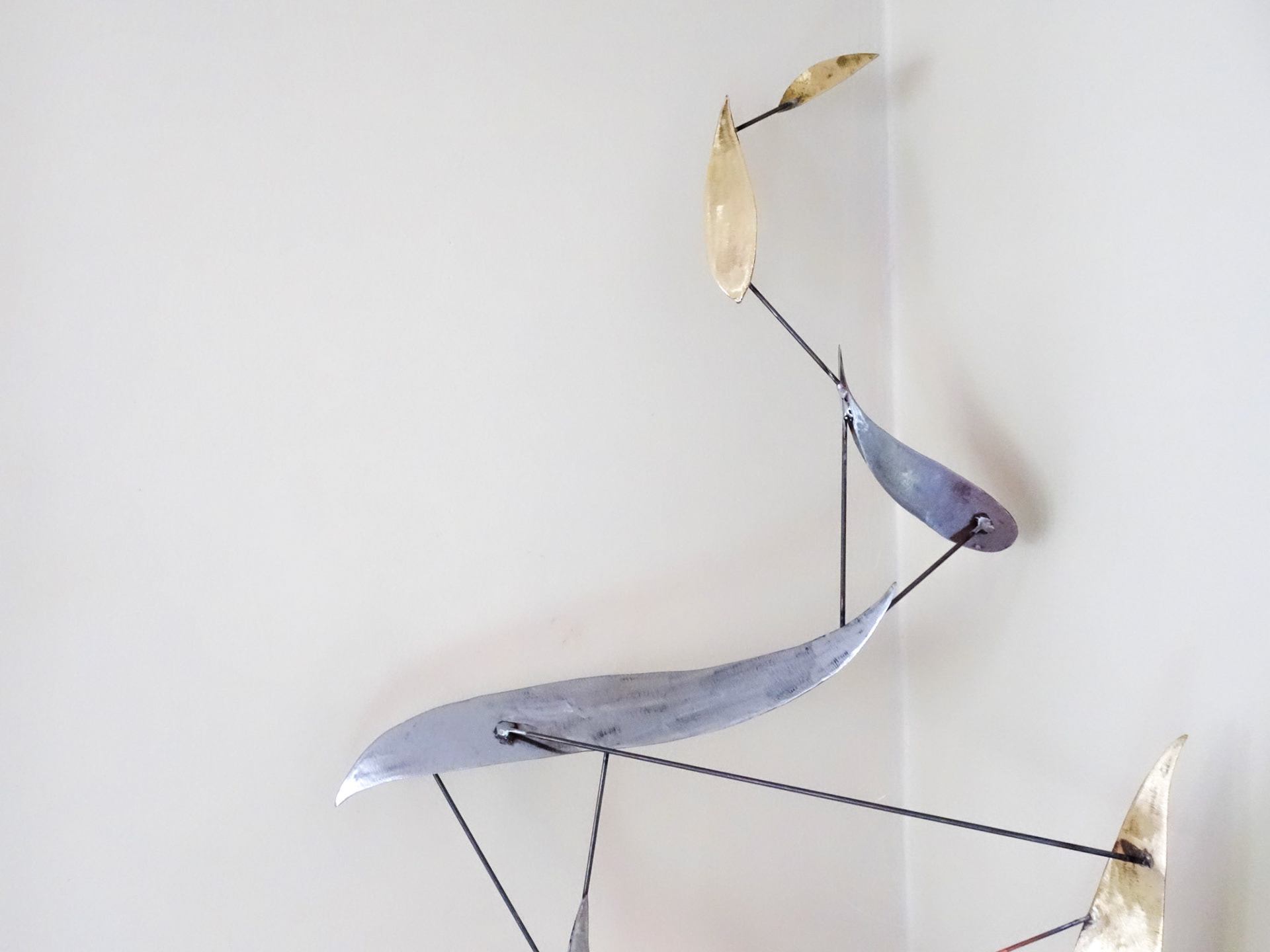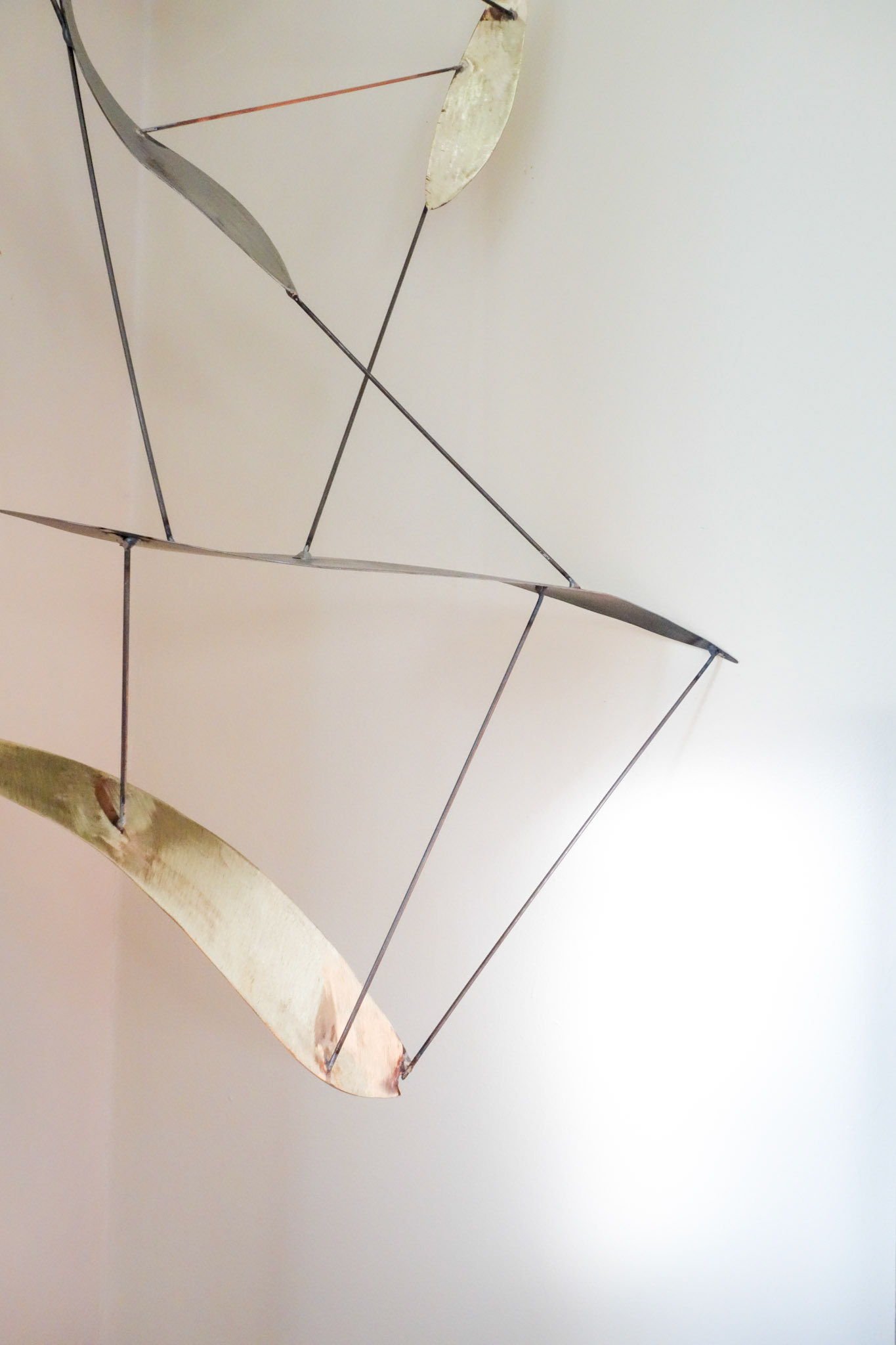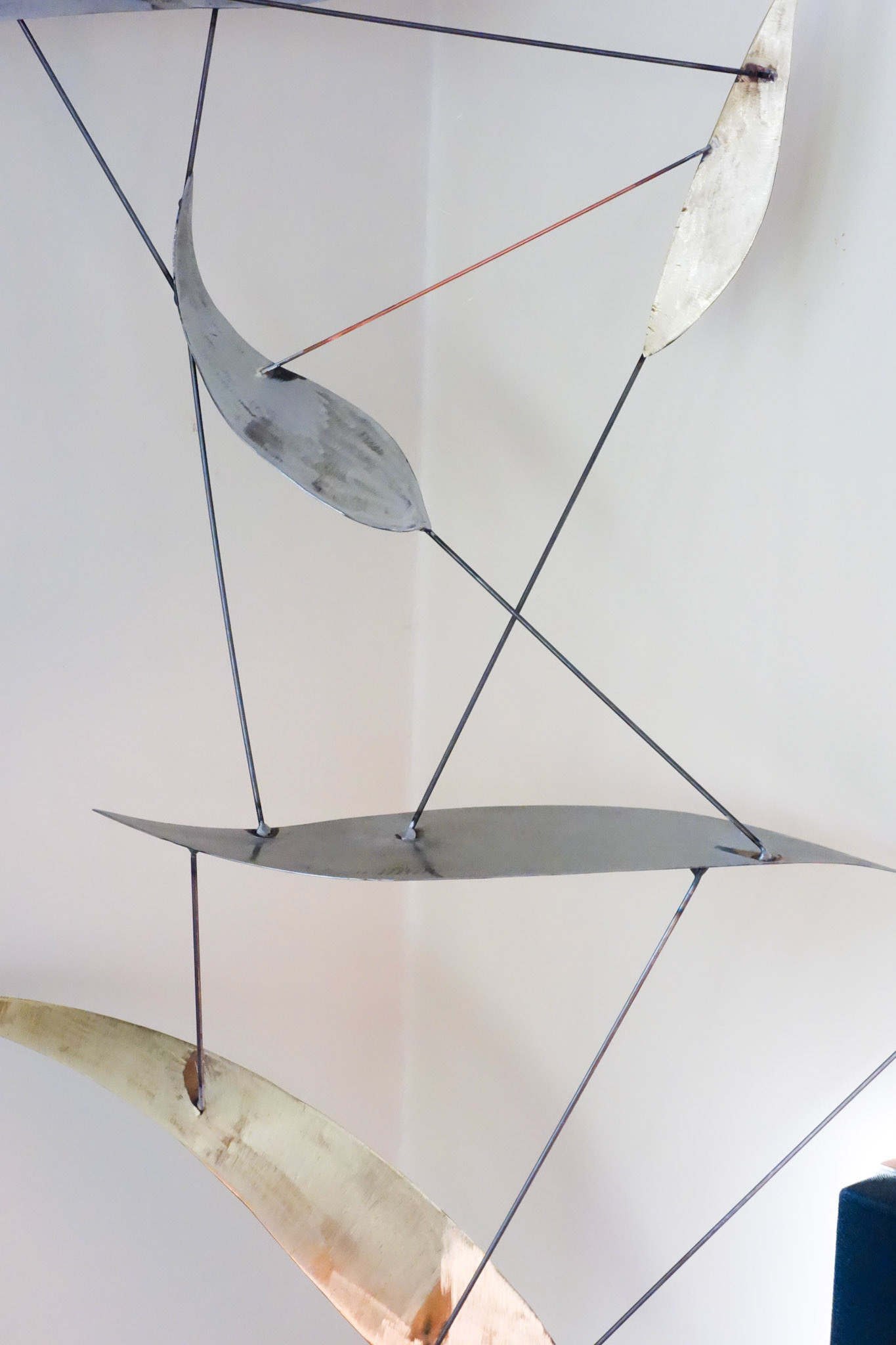 Brushed finished mild steel, 206 brass, steel and copper-coated rod, and silver. Roller formed, and torch brazed