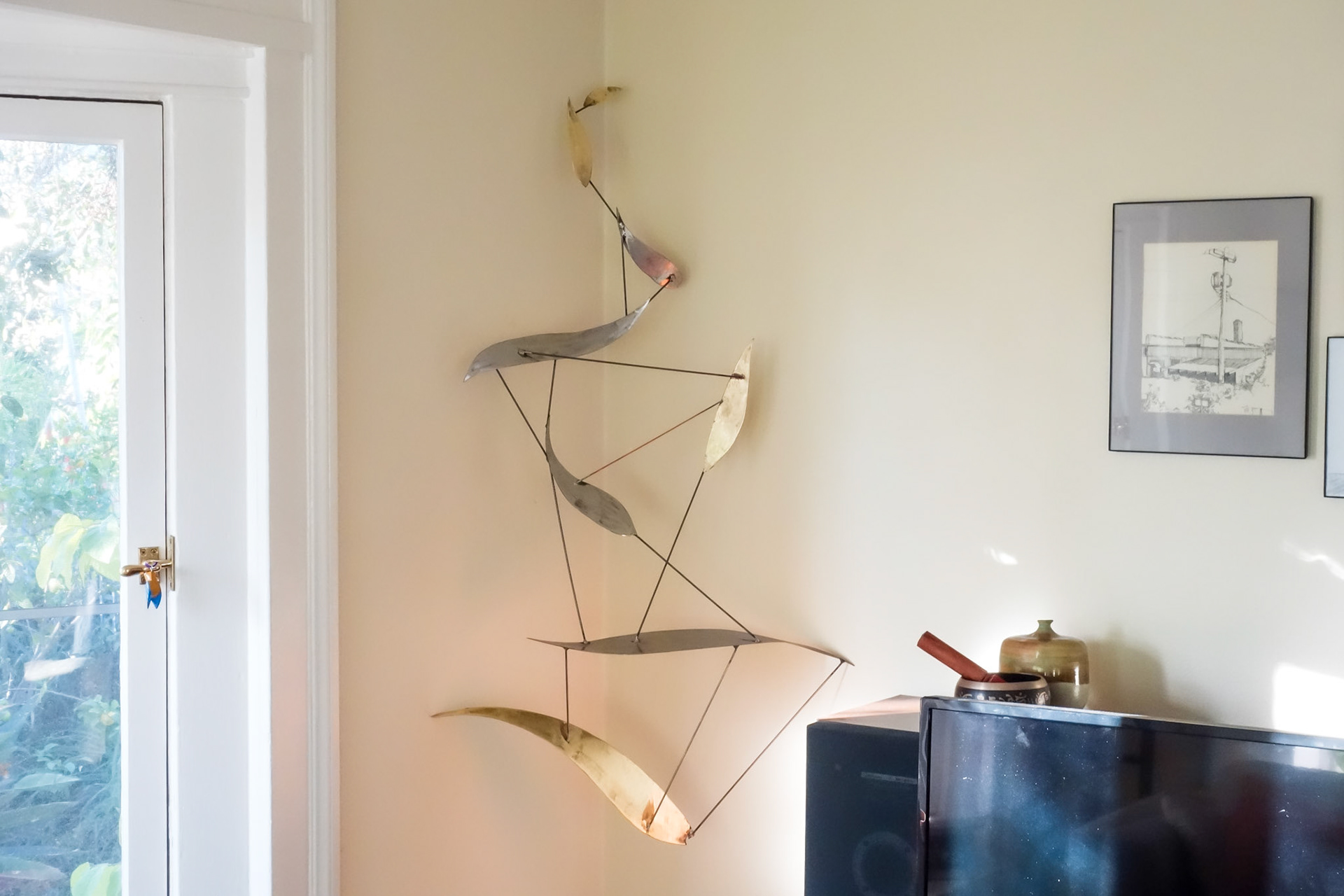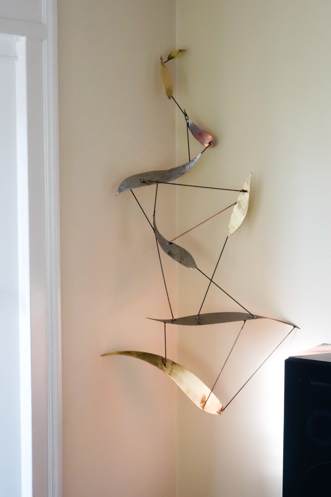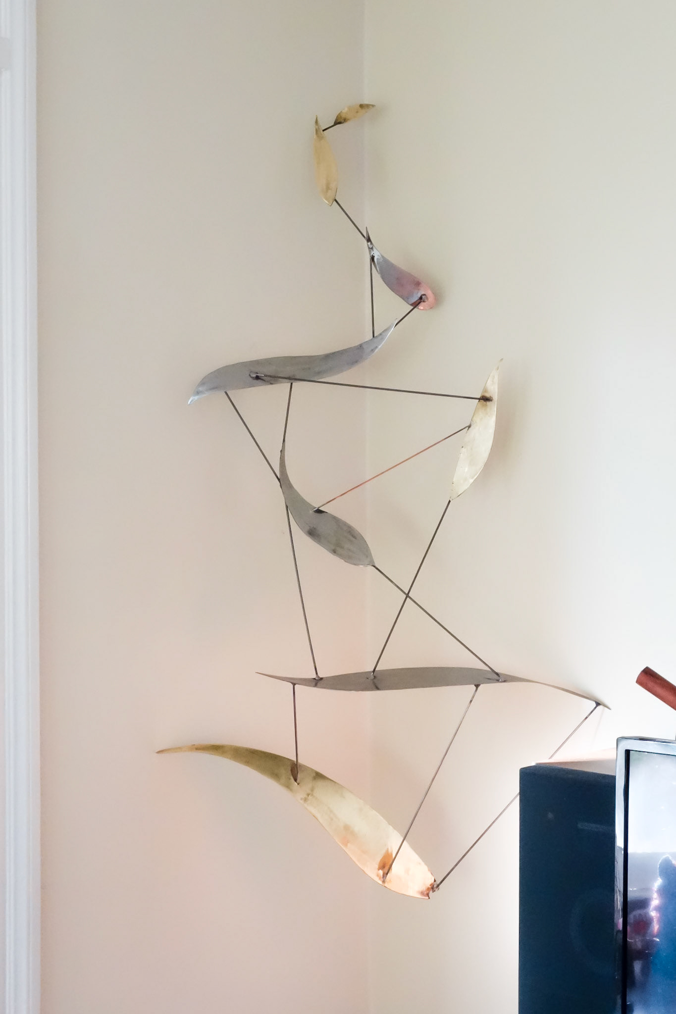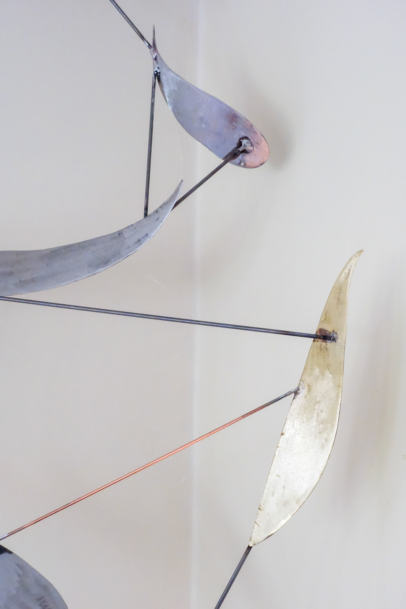 Brushed finished mild steel, 206 brass, steel and copper-coated rod, and silver. Roller formed, and torch brazed